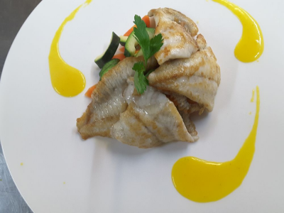Filetto di Spigola al vapore con verdurine e maionese aromatizzata al basilico € 16.00